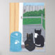 Painting of a tortoise shell and tuxedo cat, sitting by the door, watching birds in the yard, by CherylsArt, is printed on posters. Great idea for cat lovers.
