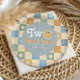 This groovy boys 2nd birthday welcome banner captures retro 70s vibes with a cute blue and yellow smile theme, and a pastel chequered pattern. It includes space to add your bits name in a fun script. Perfect for a "Two Cool" boho birthday.