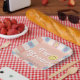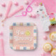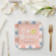 This groovy girls' 2nd birthday paper plate design captures retro 70s vibes with a cute pink theme, floral accents, and a pastel chequered border. Fully customisable, it includes space for a name in an girly script. Perfect for a "Two Groovy" boho birthday, this playful, elegant design adds charm to your little one's special day!