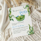 Celebrate your little babies' arriving with this greenery inspired invitation, perfect for the modern, stylish twins baby shower! Featuring a watercolor kawaii peas with blue bows and the playful slogan "Two Peas in a Pod" this design captures the essence of youthful fun and elegance. Customise the details to make it uniquely yours and create a memorable announcement that family and friends will adore.