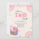 Cute Two Sweet Pink Doughnut Girl 2nd Birthday Invitation