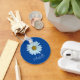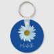 Monogram botanical keychain with a white daisy and a dark blue background. With white typography script, you can personalise with your own name. A lovely accessory or your keys or a lovely gift for someone special.