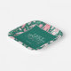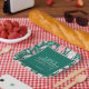 The Ugly Sweater Christmas Party paper plate has a bold yet stylish vibe, blending a retro and botanical theme with a pastel pink and forest green colour scheme. The background is a rich, deep forest green, which creates a striking contrast for the lighter, more playful elements on top.