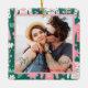 The Ugly Sweater Christmas 1st Year Married Postcard has a bold yet stylish vibe, blending a retro and botanical theme with a pastel pink and forest green colour scheme. The background is a rich, deep forest green, which creates a striking contrast for the lighter, more playful elements on top.