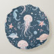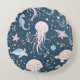 Cute Underwater Jellyfish and Sea Turtles Pattern Round Cushion