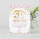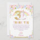 Cute Unicorn 3rd Birthday Rainbow Floral Thank You Card