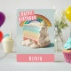 A cute birthday card featuring an illustration of a unicorn cake with rainbow colours on the front with "Happy Birthday" in a white, all-caps bold font. Personalise the front by adding your name(s). The inside of the card features space for your typed or handwritten message.