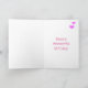 Birthday card with a cute cartoon of a unicorn holding a message board. Message can be easily personalised to add a name of your choice or to change the message completely using the template text. Inside the card says 'Have a Wonderful Birthday!' and has two pink hearts. Unicorn is white with blue eyes and a pale pink mane and hooves. Cute card to personalise and send to any child who loves unicorns!