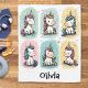 This personalised girls' fleece blanket features a set of sketched unicorn doodles in a whimsical, playful style with cheerful expressions set against pastel-coloured backgrounds.