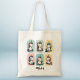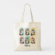 This personalised girls' tote bag features a set of sketched unicorn doodles in a whimsical, playful style with cheerful expressions set against pastel-coloured backgrounds.