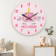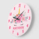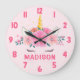 Cute Unicorn Eyelashes Girls Bedroom Wall Clock. This design features a beautiful unicorn surrounded by gold stars and floral flowers. Pastel pink magical fantasy wall clock for girls. Personalize this custom design with your own name or text.