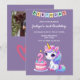 Cute unicorn family photo purple 2nd birthday invitation