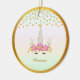 Cute Unicorn, Flowers & Gold Confetti Ceramic Ornament