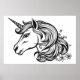 Cute unicorn head drawing. Poster
