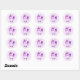 Stickers with a whimsical drawing of a cool and funky pink cubby unicorn which has a purple mane and tale. This cute creature is wearing heart-shaped sunglasses and is decorated with little stars. Pink watercolor background.