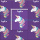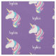 Cute purple unicorn fabric for a little girl. She will love seeing her name printed on this custom printed fabric just for her. This design features a white unicorn with a colorful mane in shades of purple, teal, pink and yellow. You can change the background color to any color that you'd like.