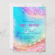 Cute unicorn pink Glitter rainbow aqua sparkly baby shower invitation that you can change to any age. The Faux sparkly iridescent glitter unicorn and stars make a beautiful background design.