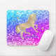 Cute unicorn pink Glitter rainbow gold monogram Mouse Pad