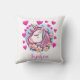 Cute Unicorn, Pink Hearts & Flowers, Custom Name Cushion