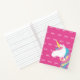 This pink unicorn kids notebook makes a great personalised gift for a girl. Design features a colourful unicorn illustration and modern script font on a pink background.