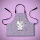 A purple Kid Apron with a cute unicorn, polka dots background and a customisable forename. A nice gift for a girl who want to try cooking or a manual activity!