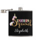 The flask itself is fine. It’s a cheap flask, obviously bought in bulk, however am prepared to overlook that. Given that it is a personalized item, I would have liked to have seen gift boxing instead of the generic packaging. Terrible printing, and/or quality. It’s a cheap, tacky vinyl. It is not cut straight and is also applied in a way that it is overhanging the bottom, causing the glue to catch on items and it will eventually roll and tear, damaging the wrap.