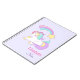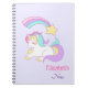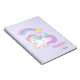 A personalised notebook with an illustration of a cute and kawaii unicorn sleeping peacefully with a fancy curly mane and tail. A colourful rainbow shooting star above her head. Adorable girly design. Pastel purple background.