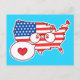A cute Kawaii style USA country map flag design with speech bubble heart love.
