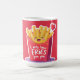 A cute and colorful cartoon illustration of a red French fries carton with a happy kawaii smiling face. The design features a floating red heart and the romantic funny pun quote "I only have FRIES for you". The image has a white sticker border, making it perfect for Valentine's Day greeting cards, fast food lovers, and humorous romantic gifts. Isolated design.