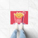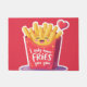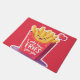 A cute and colorful cartoon illustration of a red French fries carton with a happy kawaii smiling face. The design features a floating red heart and the romantic funny pun quote "I only have FRIES for you". The image has a white sticker border, making it perfect for Valentine's Day greeting cards, fast food lovers, and humorous romantic gifts. Isolated design.