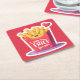 A cute and colorful cartoon illustration of a red French fries carton with a happy kawaii smiling face. The design features a floating red heart and the romantic funny pun quote "I only have FRIES for you". The image has a white sticker border, making it perfect for Valentine's Day greeting cards, fast food lovers, and humorous romantic gifts. Isolated design.
