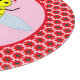 There is a pattern of small red sunflowers surrounding the bee.