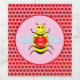 This awesome sheet of wine bottle labels features a cute little Valentines Bee. The Bee has a furry yellow body with black stripes and red antennae. It is holding on to a red heart shaped piece of honeycomb and is surrounded with sunflowers. Each flower has red petals to match the romantic bee and a black centre. There is white text in the middle of the honeycomb that says the romantic message "Bee mine". This little bee is ideal for showing your love for someone special.