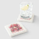 The coasters are gorgeous, a quality feel and heavy weight. They look like a precious archeological find. A rustic stone juxtaposed with a modern floral black and white print. I like the way the print goes slightly imperfect on the cut stone edges giving them a kind-of natural beauty.