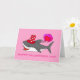 Greeting card with cute Valentine's Day Shark wearing a red stovepipe hat with little hearts and carrying red and pink balloons. The text says "Happy Valentine's Day". The design is customisable and you can personalise the text.