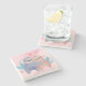 The coasters are gorgeous, a quality feel and heavy weight. They look like a precious archeological find. A rustic stone juxtaposed with a modern floral black and white print. I like the way the print goes slightly imperfect on the cut stone edges giving them a kind-of natural beauty.