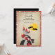 This custom party invitation features a cute Halloween theme. An image of a girl vampire is pictured at the bottom, standing in front of her haunted castle. A cute little black cat is sitting next to the vampire girl, and a full moon is shining bright in the night sky. A couple of spooky bats are flying above. It's great for a festive birthday party or other Halloween celebration.