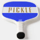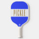 Cute Vibrant Bright Blue White PICKLE Stripes Text Pickleball Paddle