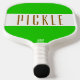 Cute Vibrant Lime Green White PICKLE Stripes Text Pickleball Paddle
