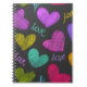 Cute Vibrant Scribbled Hearts with Love Script Notebook