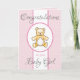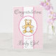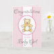 Cute vintage design with hand-drawn teddy on the pink background for a baby girl.