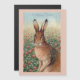 Adorable vintage holiday art featuring whimsical brown Easter bunny in a field of blooming clover with A Happy Easter Script. Background colour is customisable.