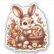 Adorable chocolate bunny, eggs, basket and flowers with vintage vibes.