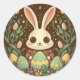 Cute Vintage Easter Bunny Eggs Round Stickers