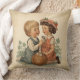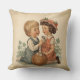 Vintage kids artwork on pillows that captures timeless childhood moments. A charming vintage-style illustration of children, perfect for nostalgic art and decor.
