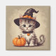 Cute Vintage Kitten in Halloween Witch Costume Magnet