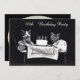 Cute, personalised custom 50th Birthday invitations for women. Whimsical, funny, black and white antique photograph of two / 2 cute, adorable kittens dressed in party clothes sitting at a table covered with a white and black table cloth with a white birthday cake with candles on a plain black background. This is a quirky vintage photography of two cats waiting to eat their cake, a perfect birthday invitation for all cat lovers. These are fun, original, unique, invitations for your Fiftieth / 50th birthday party celebrations and are fully personalizable and are printed/decorated on both sides / double sided printing / printed on two sides. If you need any assistance in customising your product please contact me through my store and I will be happy to help. Pearl mat by ©Hazel Kinvig-Paul www.design-a-dream.co.uk.