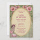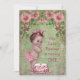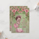 Girls' elegant pink vintage princess 1st birthday party or 2nd birthday party invitations with a beautiful vintage illustration of a cute and adorable baby girl with stylish antique pink Princess crown / tiara, sweet bunny rabbit slippers, pink diaper with ruffles and a pink bow in her hair standing next to her pretty birthday cake with candle on a beautiful Victorian art illustration of a stylish wild pink dog roses flowers and vines frame on a shabby chic green damask pattern background with a vintage grunge look, and an effect which makes the edge of the paper appear old, curled, ripped and stained. On the back is a vintage pearls and lace mat image for your text details. Pearl mat by ©Hazel Kinvig-Paul www.design-a-dream.co.uk. Chic, trendy, glamourous, girly, fun, fashionable affordable girl first or second birthday party invites. A classy, modern invite with an old fashioned, vintage look. Chic, trendy, glamourous, girly, fun, fashionable affordable girl's First or second birthday party invites for your Princess themed party. Double sided printing. If you need any assistance customising your product please contact me through my store and I will be happy to help. PLEASE NOTE:- All invitations on Zazzle have flat printed images.