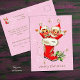Cute Vintage Retro Christmas Elves Pink Postcard
