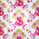 Whimsical cute watercolor art painting of a girls doll holding a red cushion love heart with flowers in pink, red, yellow and white. Customise with your short name, this example reads Katie. a great personalised fabric ideal to make items for girls who love dolls. Original pan and tube watercolor painting by Sarah Trett for www.mylittleeden.com